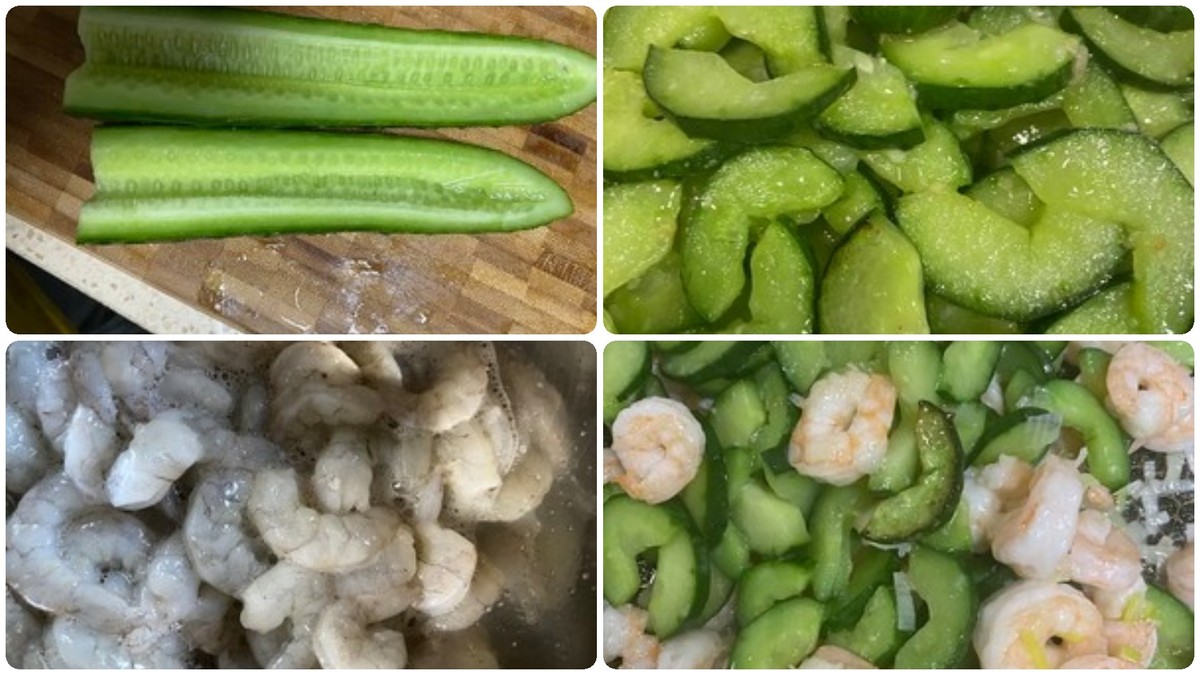 所需食材:适量黄瓜,适量虾仁。