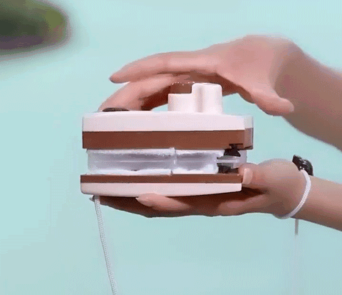 这款玻璃擦它是采用磁吸设计,内外放置,在玻璃上它会自动吸附!真的是一面擦,两面净!