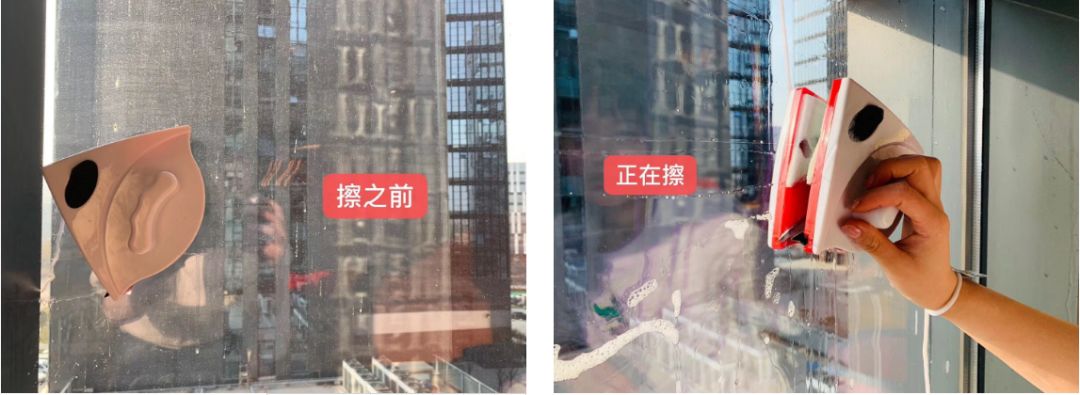 用它擦完的玻璃真的超级干净!前后完全不像是同一片玻璃!