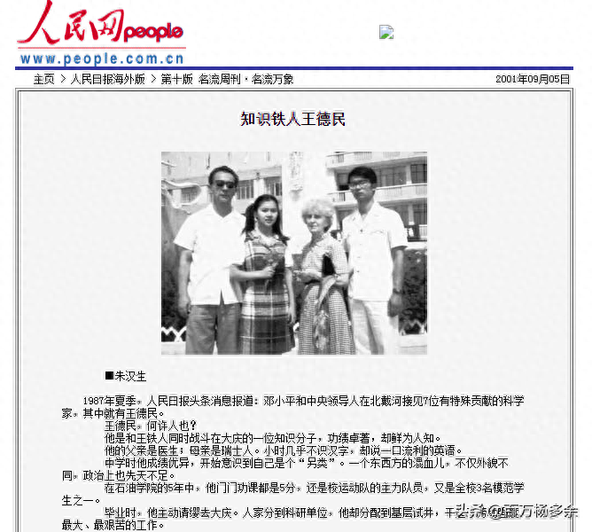 这个方法对了解大庆地下的压力情况,制定采油战略非常重要,刚毕业6个月的王德民,一下子解决了当时国内专家们最棘手的问题,一时间大放异彩,令部分人妒忌。