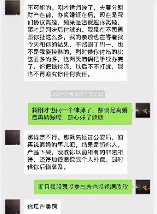 苏享茂依旧温柔地对她说:“我问了一个律师,都说是离婚后再转账呢,放心好了欣欣。”