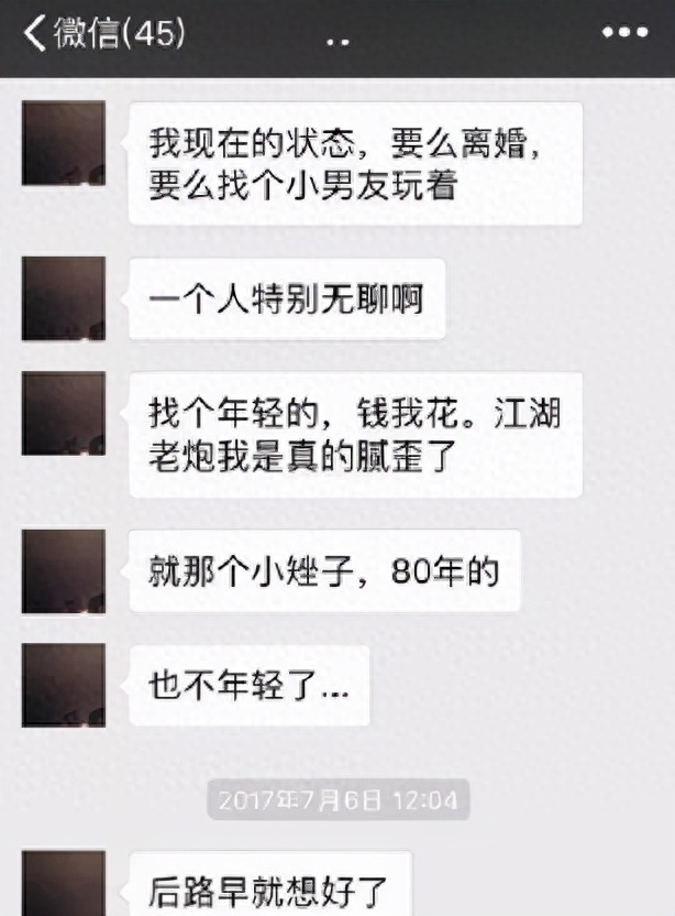 “我现在的状态,要么离婚,要么找个小男友玩着。找个年轻的,钱我花……”