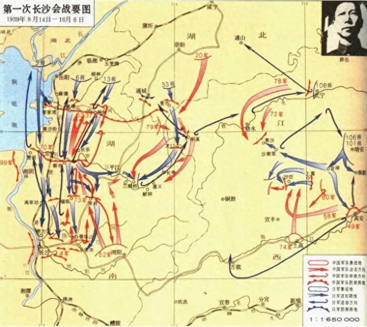 薛岳作为战区总司令、湖南省省长,自然守土有责,于是,他调集共计52个师应战,经过了近一个月的苦战,日军在付出伤亡四万多人的代价之后,不得以开始退却,薛岳获得了第一次长沙会战的胜利。