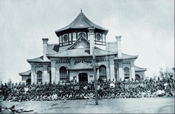 潍县乐道院是美国传教士狄乐播于1883年修建的,取“乐于修道”为意。1900年遭义和团烧毁,1902年北美长老会用庚子赔偿款,又重修扩建了潍县乐道院,建有基督大教堂、广文中学、教会医院等,形成了当时山东省最大的集布道传教、教育、医疗等为一体的综合性场所。潍县乐道院的钟楼和大教堂在当时是潍县标志性建筑物。1937年日本鬼子侵略中国后,对中国人烧杀抢掠,无恶不作,犯下了滔天罪行。又发动珍珠港事件,与美国宣战,于1942年初,在潍县乐道院设立了二战时期中国境内最大的外侨集中营潍县集中营,号称东方的奥斯维辛。直到1945年8月抗战快胜利时,被关押的外国侨民才得以重获自由,返回祖国。在这期间潍县乐道院遭到了日本鬼子肆无忌惮的严重破坏,潍县城解放后,潍坊市人民政府又重新修缮改造了潍县乐道院,并把广文中学和教会医院分隔开,分别取名潍坊二中和潍坊市人民医院。