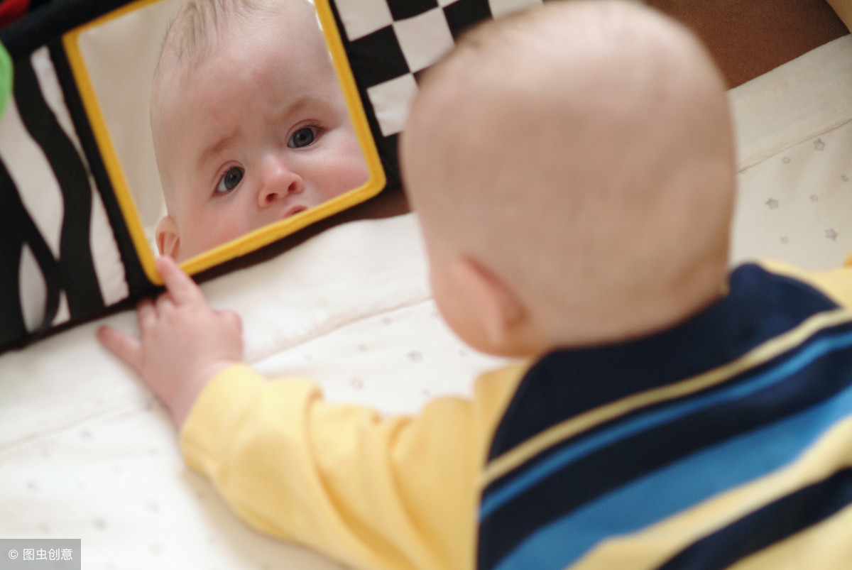2、宝宝看到镜子中的自己,会对着他发笑。