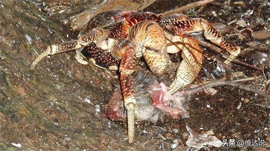 三兄弟群岛中的椰子蟹在捕食老鼠