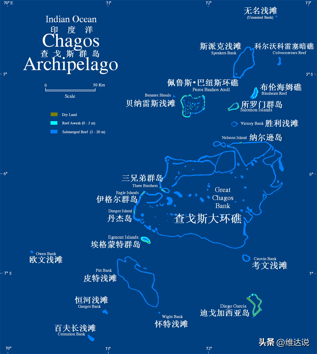 查戈斯群岛位于马尔代夫以南600余公里,因美军的迪戈加西亚岛军事基地而闻名世界。