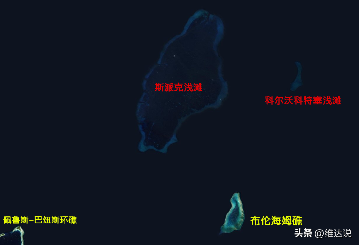 佩鲁斯-巴纽斯环礁中的岛屿分布图