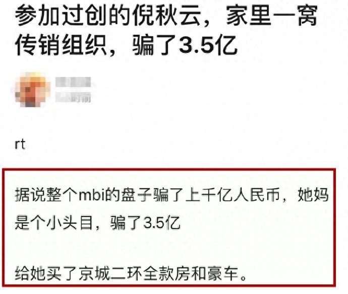 她妈妈作为马来西亚国际MBI全球领导人,算个小头目吧,分了3.5亿,用骗的钱给倪秋云在北京二环附近买车买房...