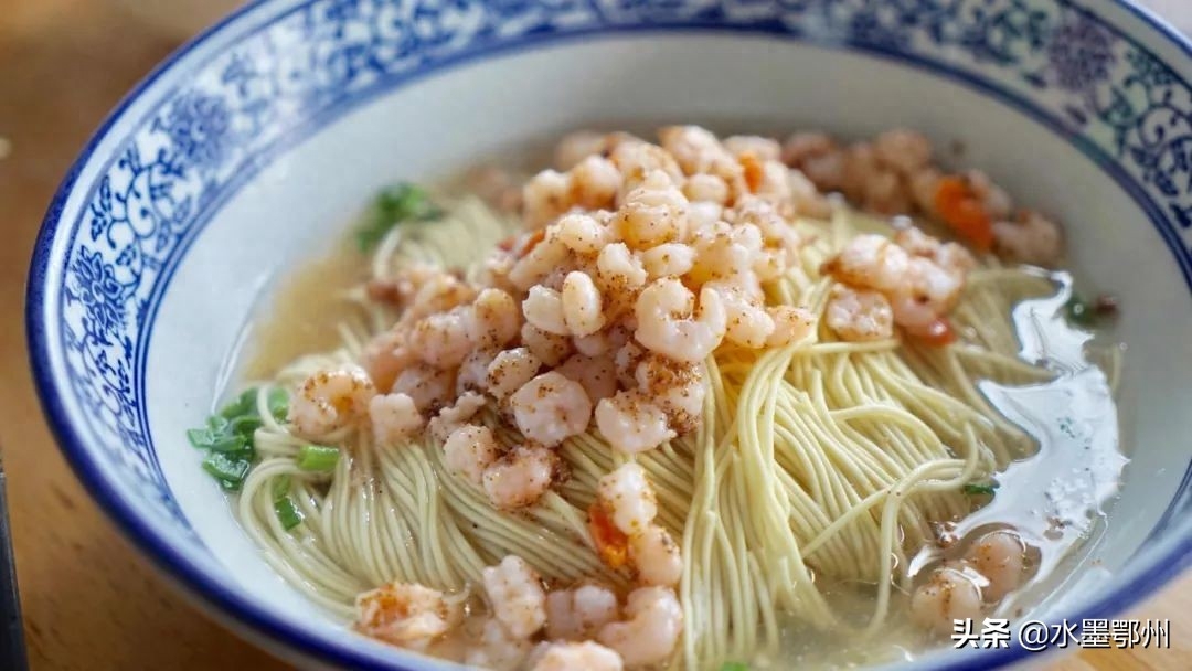 三虾面,苏州面的头牌,一碗三虾面的价格通常在百元上下。价格这么贵,一方面是因为时令短暂,另一方面是它非常费人工。