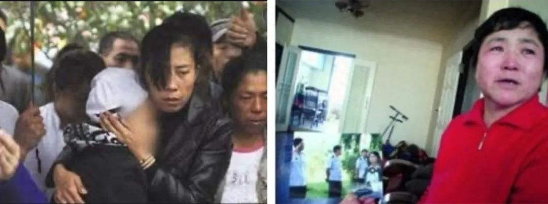 · 夏俊峰的妻儿(左)和申凯的母亲(右)