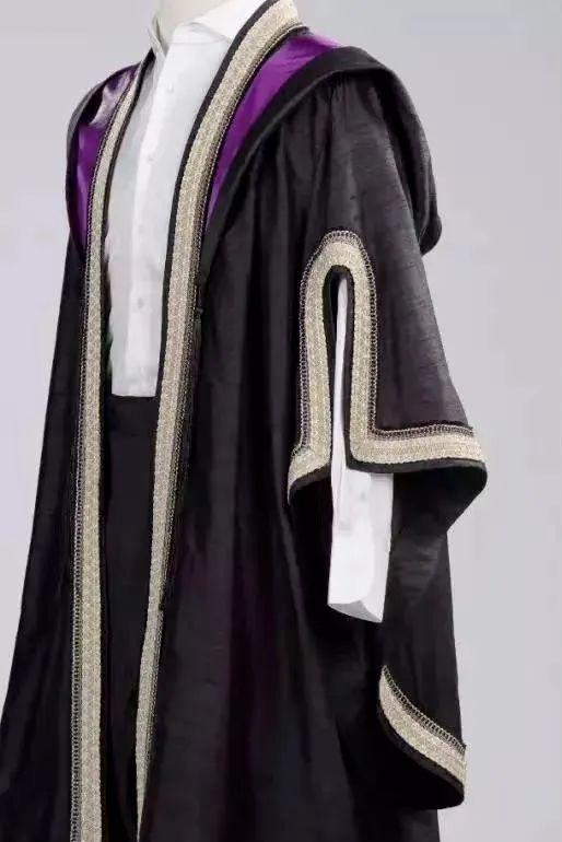 比如门襟的颜色,本科学士服是紫红色,而硕士学士服的则是蓝色;