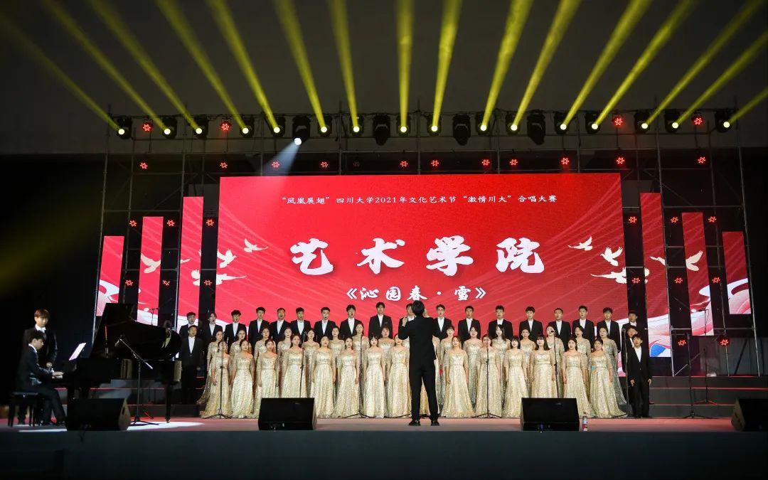 “凤凰展翅”四川大学2021年文化艺术节“激情川大”合唱大赛在五四前夕如期而至,本次大赛演唱歌曲分为“红色”“强国”“强军”“战疫”“青春”“古韵”六个篇章,川大青年用嘹亮的歌声唱出曲曲赞歌,表现了对祖国繁荣富强的美好祝愿和为实现中华民族伟大复兴的中国梦贡献青春力量的决心与担当。