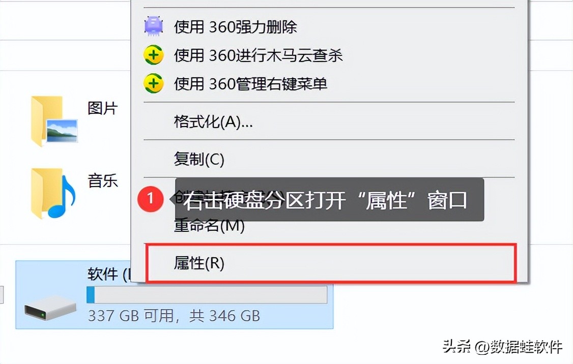 步骤1:鼠标右键你需要进行格式化的磁盘,点击【属性】;