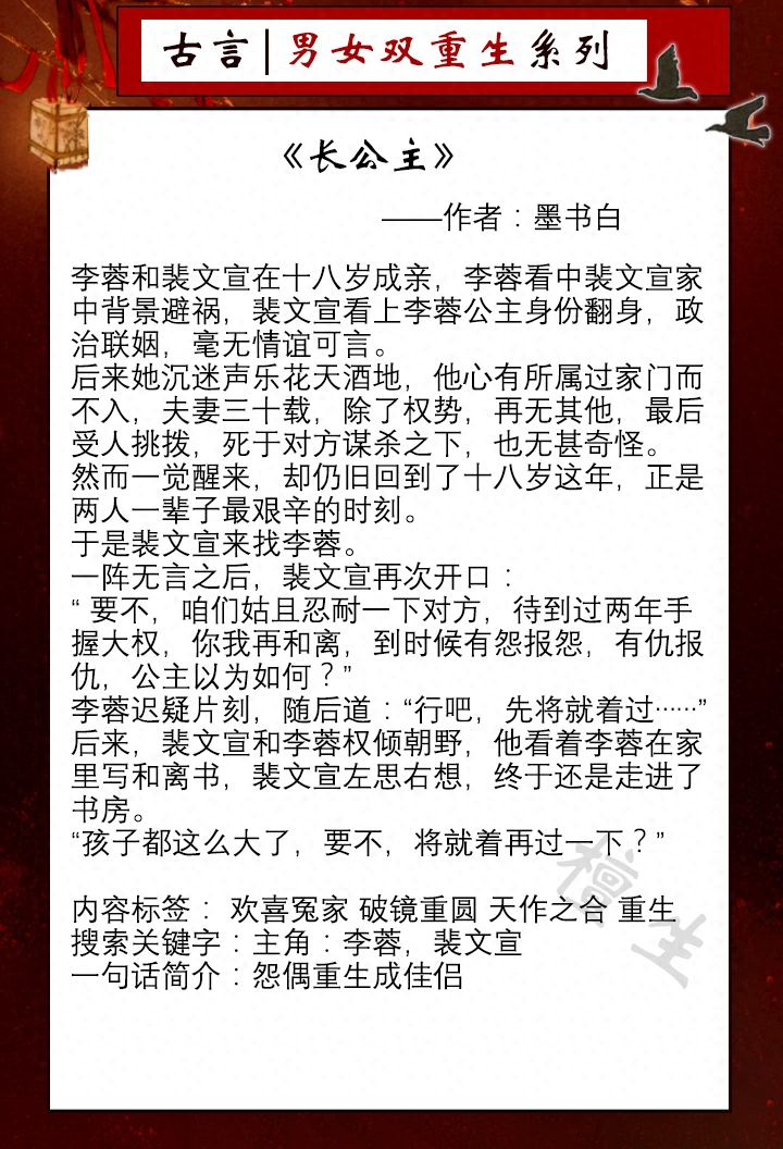 男女主双重生古言盘点!前世怨偶今生再聚!且看寡情男追妻火葬场