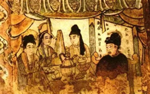 ▲宋代 河南禹县白沙2号宋墓墓主夫妇宴饮图,其桌上摆放着茶托与茶盏