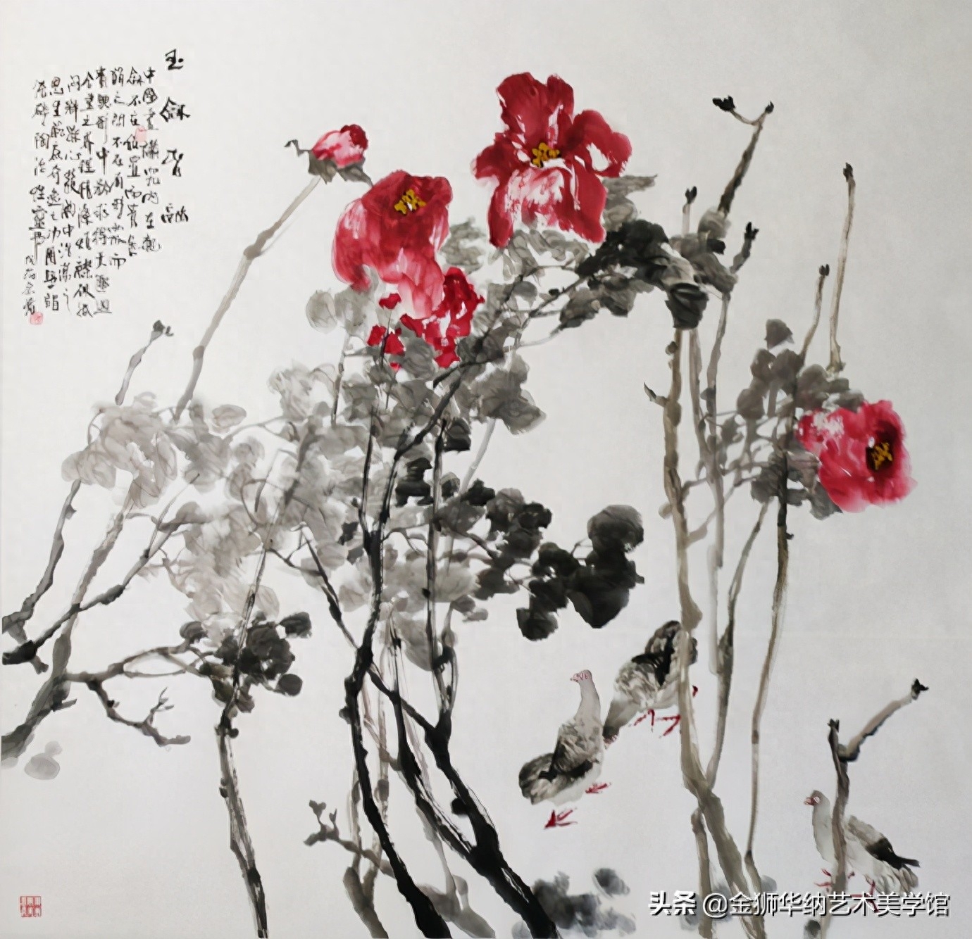 写意花鸟画创作我认为主要有两个基点:一是品味、格调和意境,二是笔墨和形。品味、格调和意境的高低取决于创作者的气质、修养、阅历、审美等;笔墨与形指基本功,落墨之形及造型。