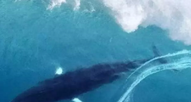 冲浪是很 刺激,但是若是你身后的浪中出现这么个庞然大物,估计心都得吓停了吧!