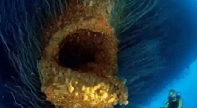 这个海底“巨兽”看上去十分恶心,全身都长满了黄色的不明物质,凹凸不平,长着大嘴,仿佛能把你吸进去,还有很多须须,渗人得很,但是事实上它只是一艘生了锈的船!