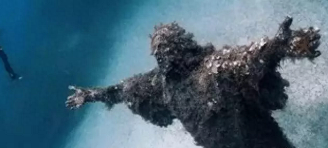 这个巨大的黑色身影,像不像是海底的恶魔来迎接你,即使只是一个海底基督雕像,但是周身都散发着恶魔般的气场!让人忍不住发抖!