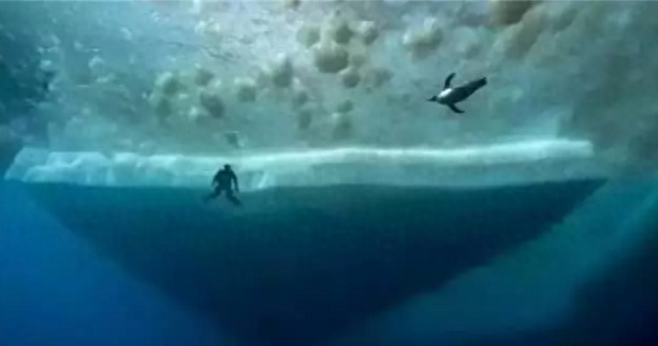这张图的浮冰覆盖了整个海绵,人在冰层下,很容易感觉喘不上气,巨大的压力感!在大海中遇见瀑布更让人瑟瑟发抖吧!尽管在现实陆地上也有瀑布,但是至少是看得见陆地的,而在大海中遇上瀑布,就真的不知道会被冲向那个地方,而且深层的高水压也会挤到让人心肺爆炸!就是死也死得极其痛苦!