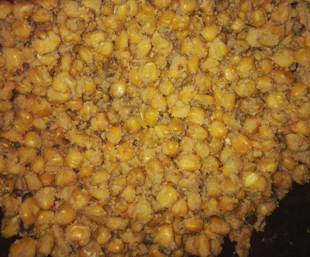 1、第一步 我们将干玉米用清水浸泡两天左右的时间。浸泡的主要目的是让干玉米充分吸水,在浸泡的过程中,要勤换水,这样能防止玉米发生酸臭的现象(一般我都是半天更换一次,刚好上下班的时间更换)。下一步将浸泡两天的玉米,冷水下锅开煮。建议大家用柴火灶煮哈,要不然老婆会挨骂的(因为会有点费气或费电,如果确实不方便,可以按比例减少材料配比,可分多次制作,减少挨骂)。先用大火煮大约四十分钟,之后我们再用小火焖半小时,这样煮出来的玉米很香,味道香甜香甜的,玉米粒状像开花了一样,用手一捏就可以捏碎,这样的状态就正好。再起锅,捞出煮好的玉米把它水沥干,然后再铺开晾干。