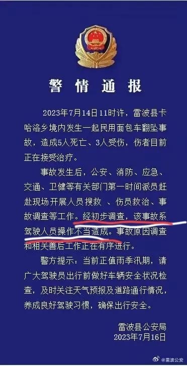 四川雷波公安通报面包车翻坠事故:初步调查系驾驶员操作不当!
