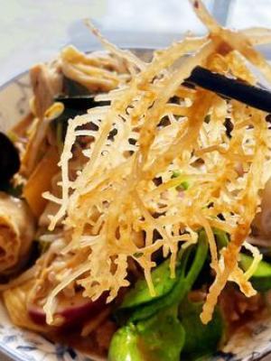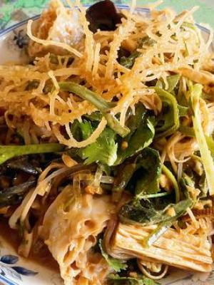 有条件的方法还可以储存不烂放一些花生碎或者是炸好的花生豆都可以哦,小伙伴们可以根据自己平时的喜好,百无禁忌想吃什么后能往里加就可以,如果水泡想吃清淡的追求龙须菜清脆的口感配菜就少放步骤一些,干龙须菜怎么泡发清脆,如果追求营养全面配菜就多加一些。色香味俱全,赶快半干动手做吧,我敢保证再怎么没有胃口地吃干的上一口,绝对胃口大开。