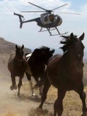 图为:美国出动直升机围捕营养野马