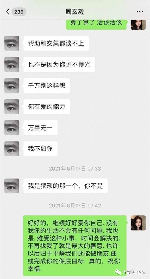 就这样暧昧了两个月,爆料人知道了周玄毅不是单身,觉得这是“精神出轨”,结果周玄毅却表示,女生因为他不是单身而放弃交流,让他感觉自己的灵魂受到了侮辱。