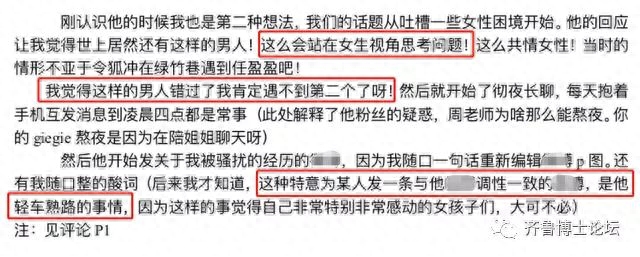 她总结了周玄毅的套路:先让女生崇拜他,然后让对方误会自己对他很特殊,是唯一一个亲密联系的粉丝,接着从线上发展到线下,以爱的名义发生关系,再培养“开放式关系”。