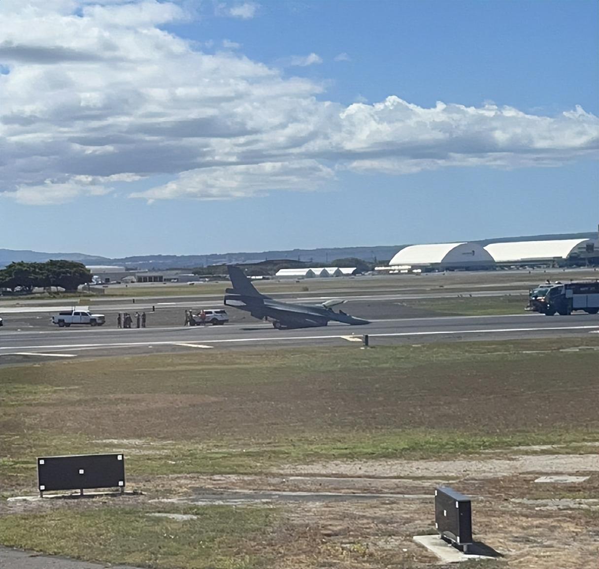 美国当地时间6日下午(北京时间7日),台湾“空军”一架“部署”在美国亚利桑那州卢克空军基地的F-16A战机,飞回台湾进行升级途中降落夏威夷檀香山时,飞机前轮发生故障无法放下。