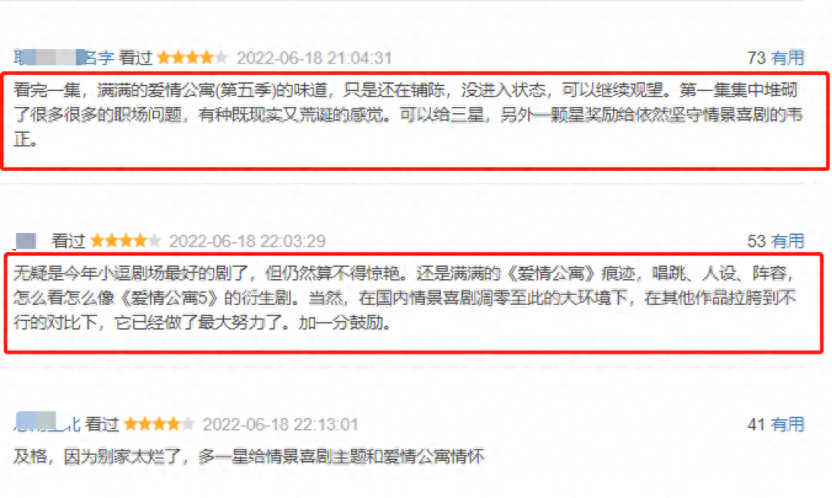 有网友直言“看完第一集,满满的爱情公寓(第五季)的味道”,有网友感慨“还是满满的《爱情公寓》痕迹,唱跳、人设、阵容,怎么看怎么像《爱情公寓5》的衍生剧”。