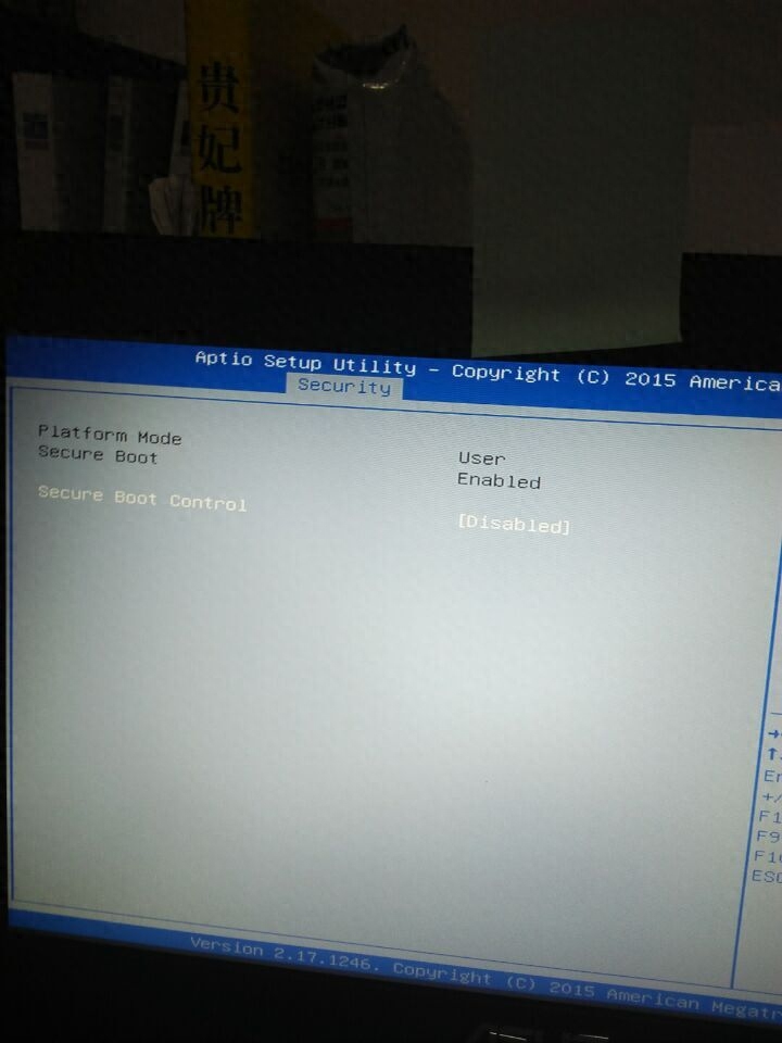 进入uefi bios之后,找到上面的security,然后选择里面的secure boot control改成disable,这是第一步,就是关闭安全启动功能。