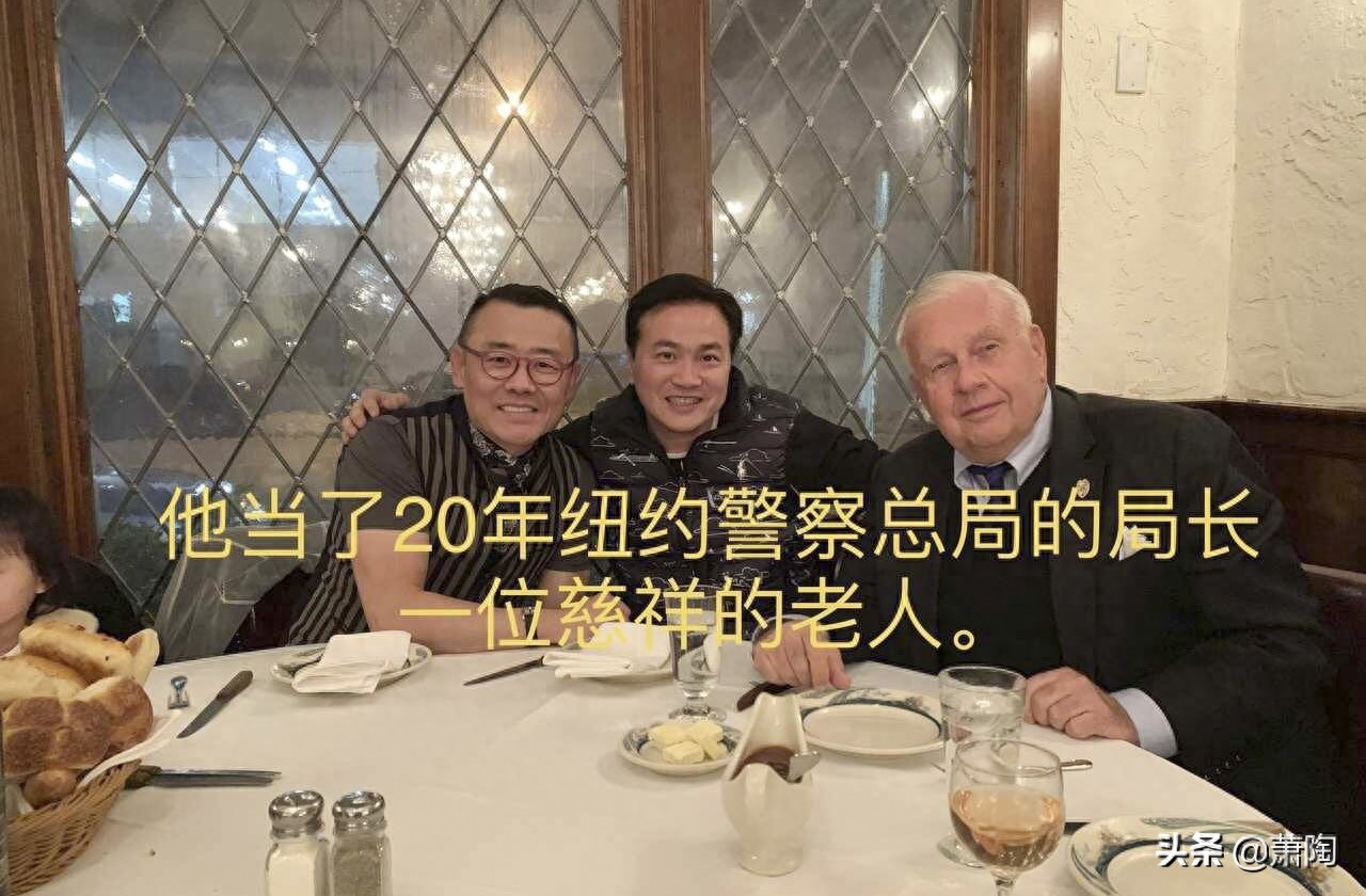 3月10日,有网友发给萧陶几张截图。原来周立波在其真爱粉总群里贴了一张合影,照片上的两行字特别吸人眼球:“他当了20年纽约警察总局的局长,一位慈祥的老人”。