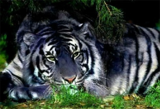 说是黑虎,但是得了黑化病的老虎其实并非全身黑色,腹部一般都会带有一些灰蓝色,也正因如此,这些老虎也被叫做蓝虎、黑蓝虎。