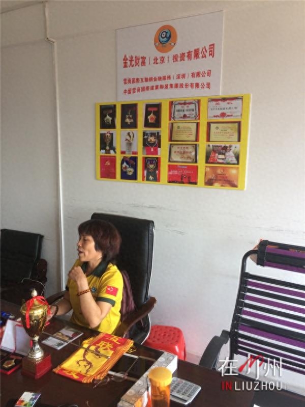 根据黄先生提供的线索,记者找到了“金光财富”设在三中路上的办事处。在那里记者看到,这个办事处只放着一些桌椅,和一些来路不明的奖杯、奖章和图片。一位姓吴的工作人员在负责具体业务,吴某指着一个奖品上的名字来介绍自己,这个奖杯上写着:2015互联网年度人物吴某。但记者在网上一搜,此事根本是子虚乌有。
