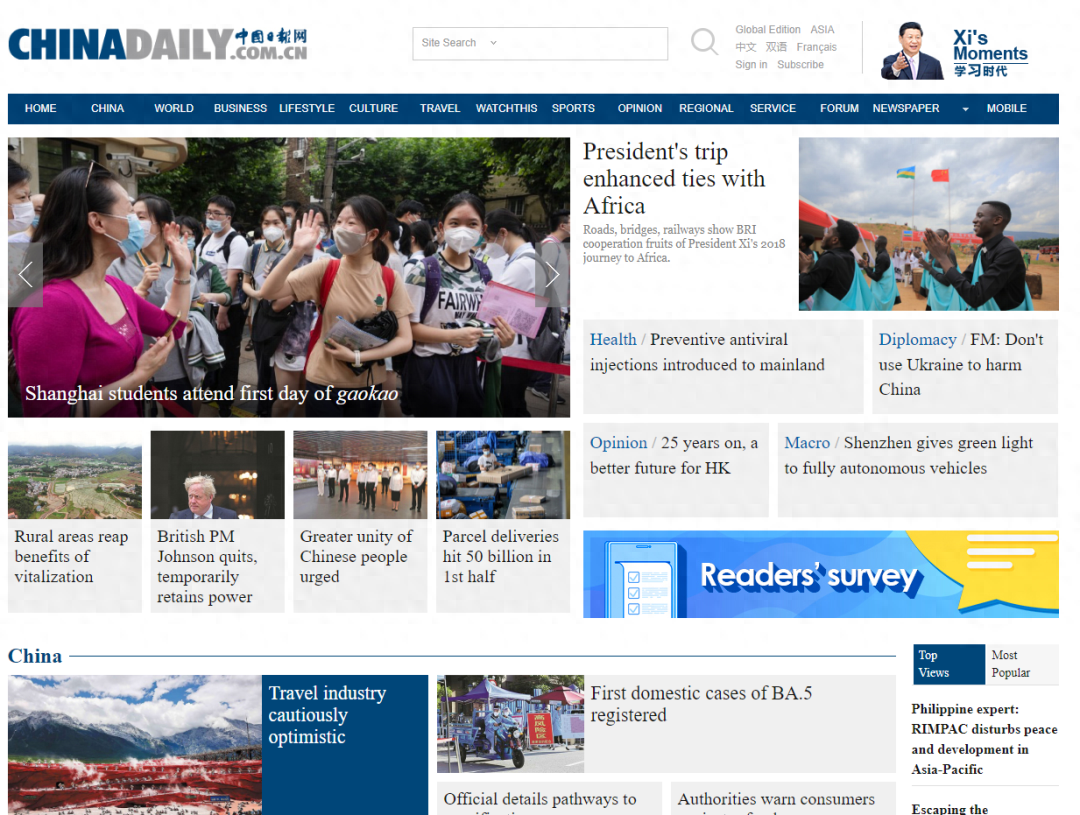 ·中国日报网是中国大陆最早的国家级英文网站,现已成为国家级综合性媒体网站和中国最具影响力的英文门户网站。