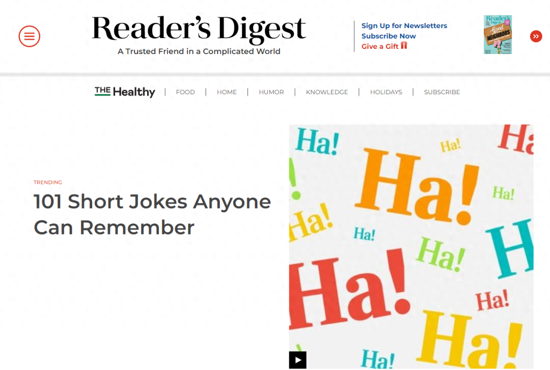它为各个年龄、各种文化背景的读者提供资讯。文章涵盖了健康保健、大众科学、体育运动、美食烹饪、旅游休闲、金融政治、政府与国际事务、家居与园艺、艺术与娱乐、商业与文化。其他固定的专栏还包括了笑话、谜语、测试、动画及读者来信。