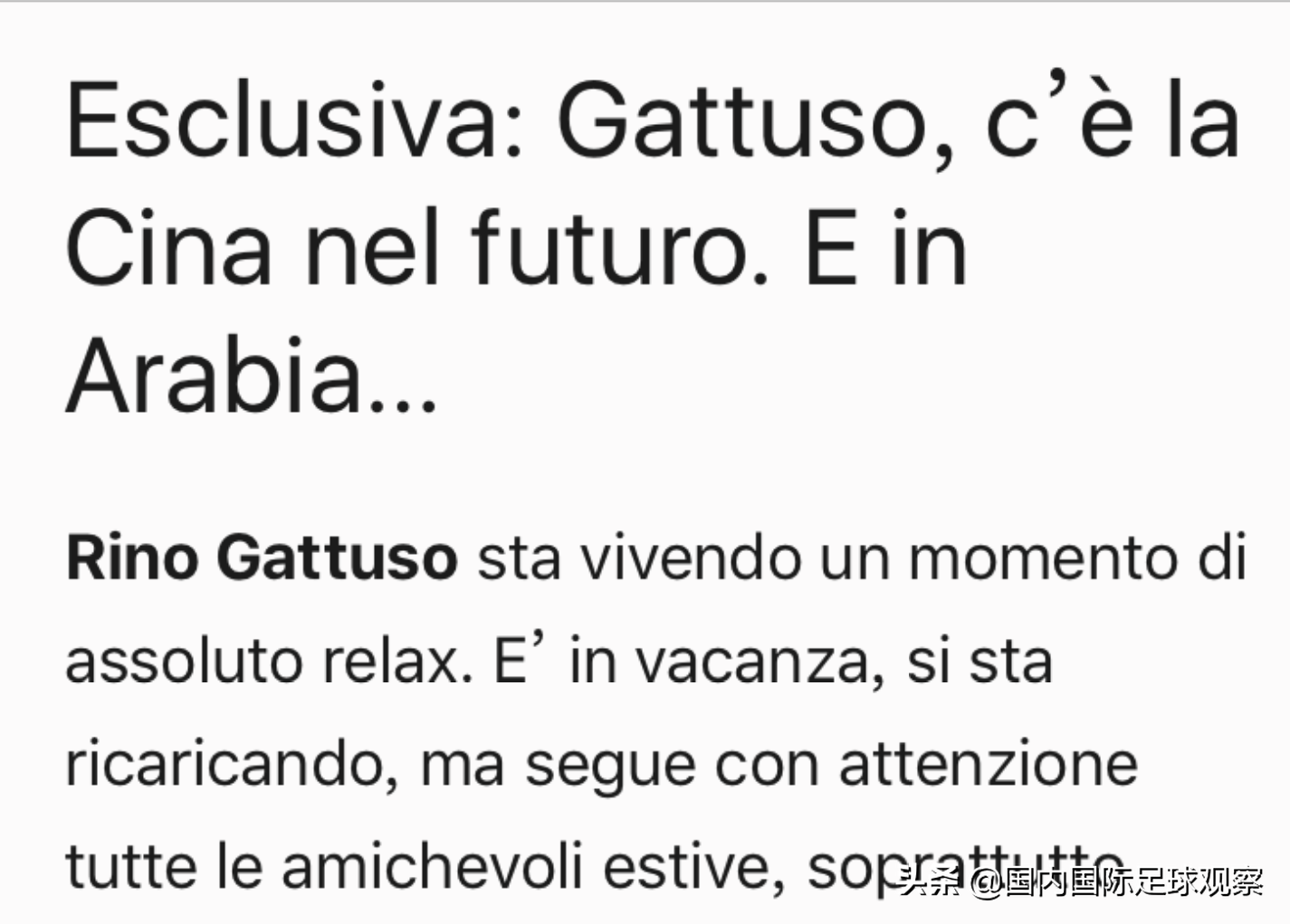 转会专家佩杜拉发布消息,中国俱乐部向前AC米兰主教练加图索提供报价。佩杜拉表示:“加图索不打算再次执教意大利球队,他的未来可能在中国。他已经收到一些中国报价。”