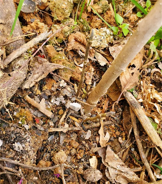 4.等过大概5-7天左右,如果看到种下的玉兰苗稍微有点歪斜,可以把它扶正,然后再填上一些土壤,用脚踩实后,再浇一次透水。
