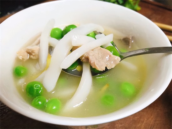 刀切糍是广东省清远市地方小吃,是一种节日食物,它是用搓透的粘米团切成条,然后放入煮沸的鹅汤内,这样做出来的刀切糍既有鹅香又够溜滑。