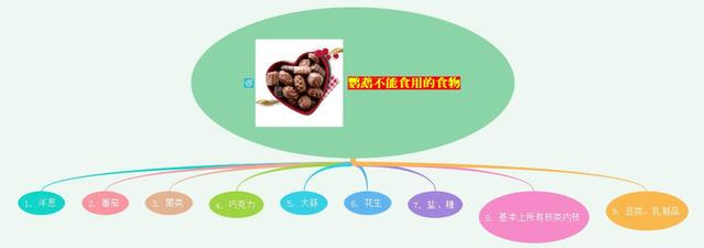 洋葱、番茄(茎、叶不要喂食)、菌类、巧克力、大蒜、花生、盐、糖、基本上所有果核类的内核、豆类、乳制品