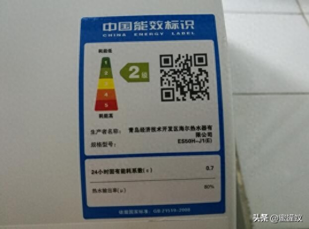 其实对于热水器的耗电量大家可以看下热水器一般都是有个能效标识,如下图:
