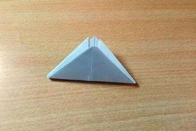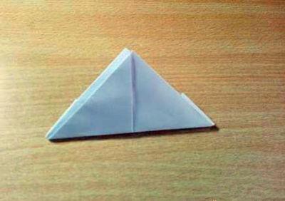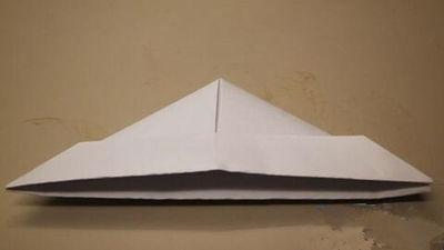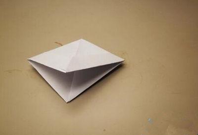 7.拉开上图中等腰边上的两条边,简易的小纸船就做好了。