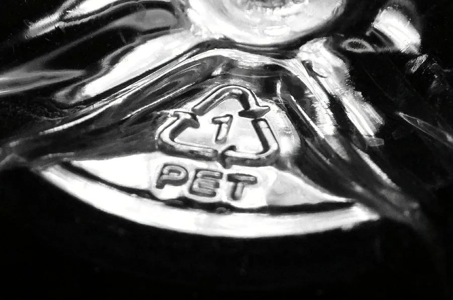 1 号塑料 PET,我们日常接触到的塑料饮料瓶用的就是这种材质,适合作常温、较低温液体的存储,化学名「聚对苯二甲酸乙二酯」。