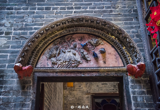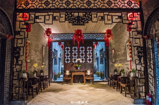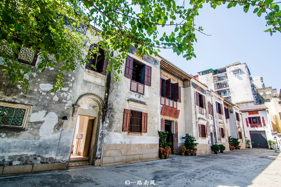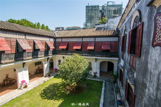卢家大屋是中式建筑中的岭南流派风格,同时在细节处融入葡式风情,比如百叶窗就是葡式的,院内还有相对讲究的砖雕和灰塑。