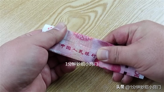 第五点,我们把钞票卷曲起来,来对比一下,如果我们是往内卷曲,上面100字样的图案花纹,就可以完全对接在一起,构成一幅完整的图案。