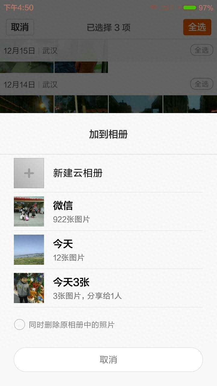 第一步:把手机拍的照片选择需要使用的,单独成为一个云相册文件。
