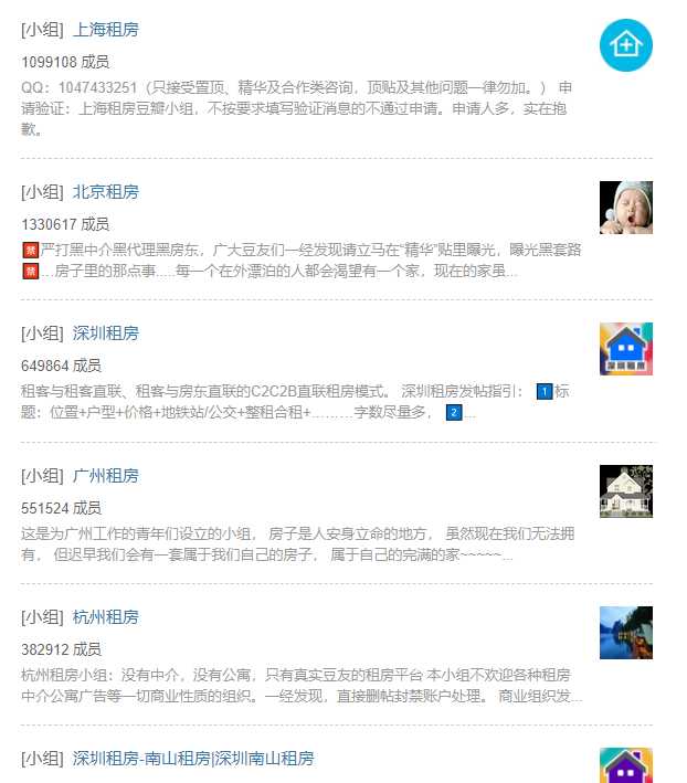 这个相信找房转租的小伙伴应该都使用过,因为上面有时候一不注意就找到了房东直租,或者是转租了好久都转租不出去,发到豆瓣一下子就转了
